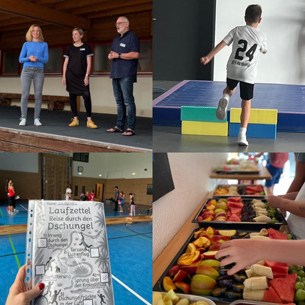 Der Spiel- und Sporttag liegt hinter uns! Musikalisch eingeleitet durch unsere Bläserklassen 3 und 4 und kulinarisch unterstützt, mit einem leckeren Obstbuffet durch den Elternbeirat, war es ein voller Erfolg! In Kooperation mit der PH Freiburg ging es durch die Dschungelbewegungslandschaft. Im Anschluss fand unser Spendenlauf für unsere Partnerschaftsschule Our Bridge statt. Schön, dass so viele Zuschauer*innen das Event begleitet haben! Ein herzliches Dankeschön an alle Beteiligten!